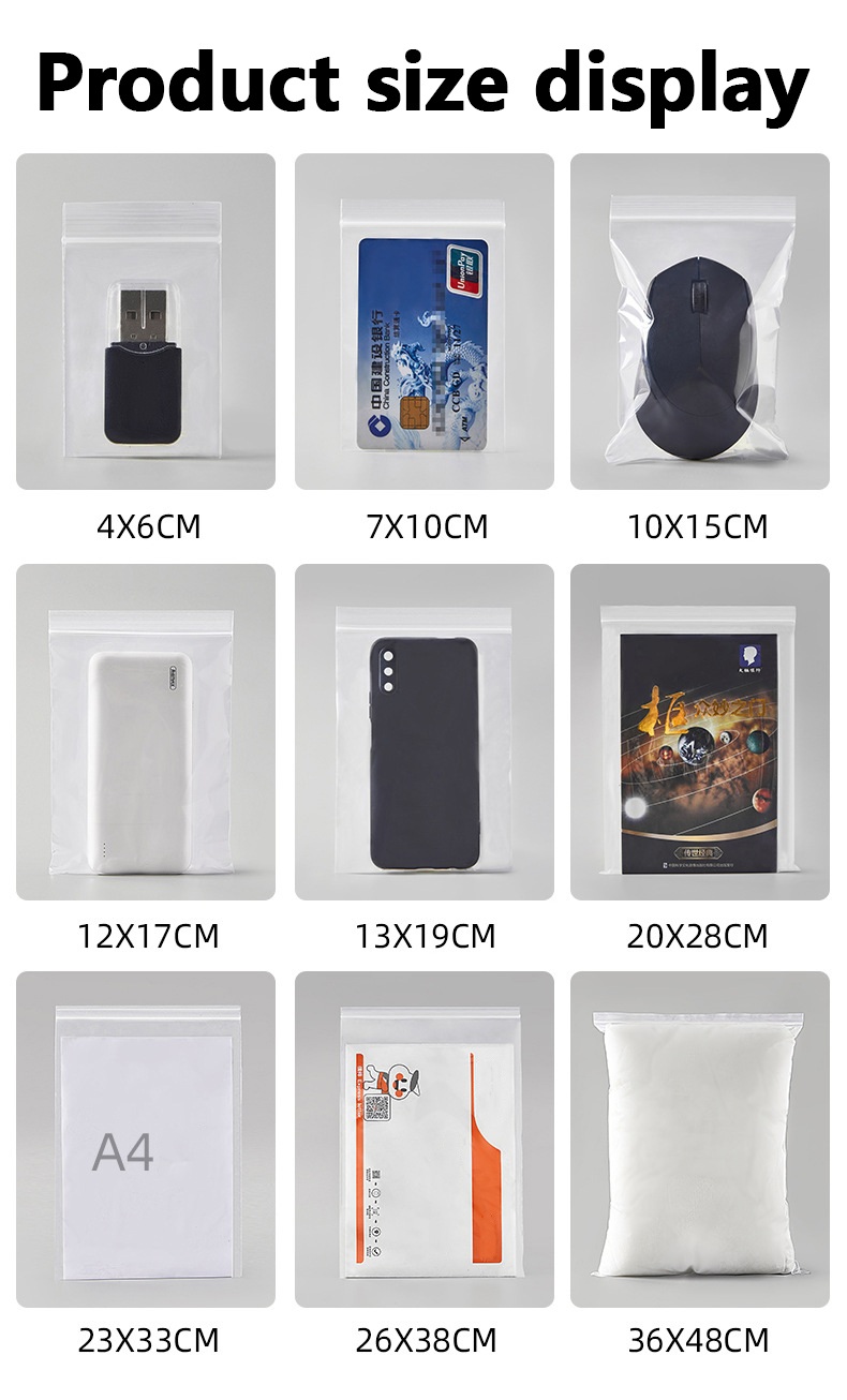 Applicazione: le borse con chiusura lampo richiudibili di diverse dimensioni sono adatte a diversi campi, come stoccaggio, abbigliamento, scarpe, gioielli, medicina, accessori hardware, ecc.